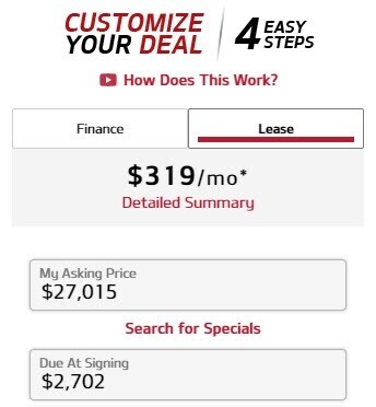 The first thing you'll do when you engage in the online pre-purchase process is calculate a payment that makes the most sense for you.